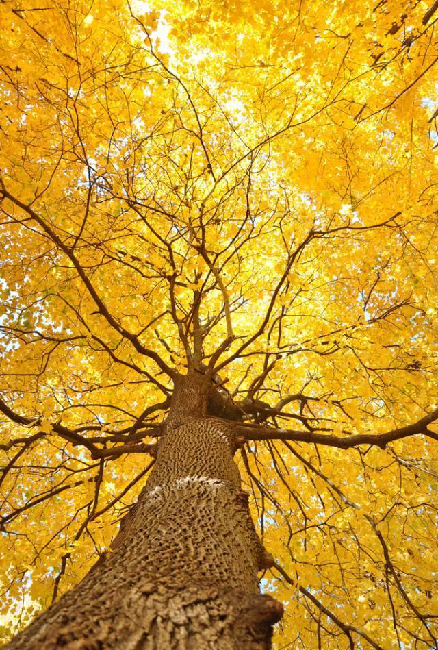 平常我们拍摄银杏树,大多是平行或仰视的视角,这样拍是受拍摄环境的限制。