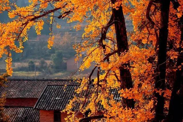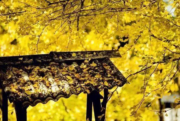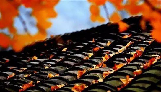 房顶瓦片搭配金色的银杏叶有不同的味道