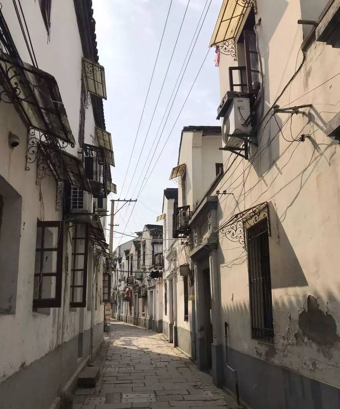 相传由杜月笙出资兴建,满目是白墙黛瓦、雕花券门、艾欧尼柱子、朱红色石库门,一派西式建筑风格,被誉为“姑苏城里的老上海”。