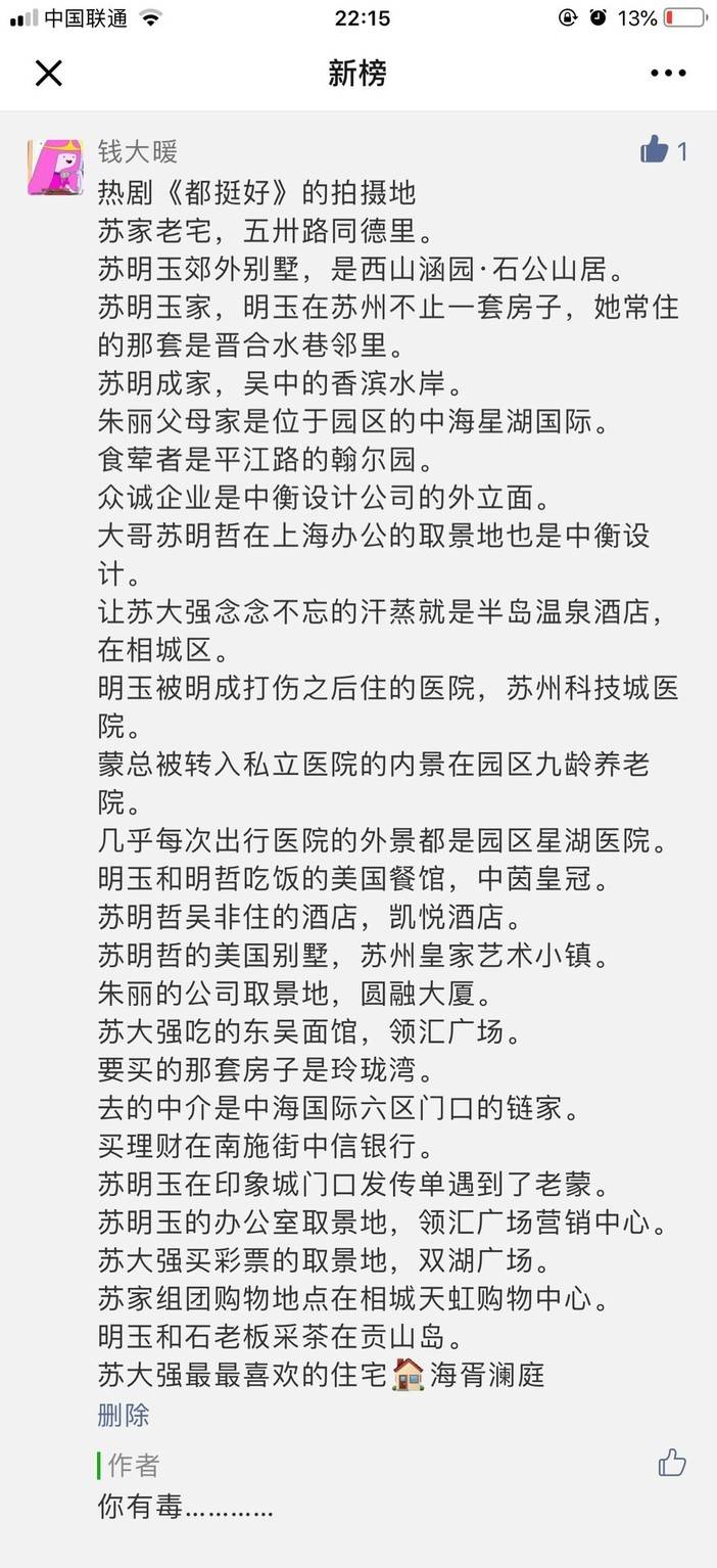 话说,爆火的国民剧《都挺好》近日大结局,不仅火了苏明玉一家四口,很多网友表示被取景地苏州圈粉了,甚至已经订好了小长假去苏州的票,想要到苏家老宅串串门,和偶遇苏大强唠唠嗑。
