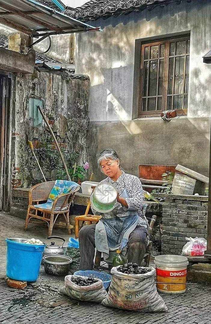 甪直古镇,富裕繁荣,但生活在这里的人们仍保持纯朴、善良、勤劳的传统,随处可见他们辛勤劳作的身影。