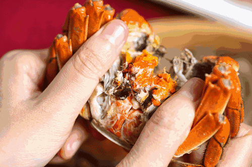 正值时令的大闸蟹,经过精心料理之后,满满的蟹肉塞满蟹壳,蟹壳鲜红透亮,金黄色的膏肉质地稠密,咬一口鲜嫩细滑,让人欲罢不能!