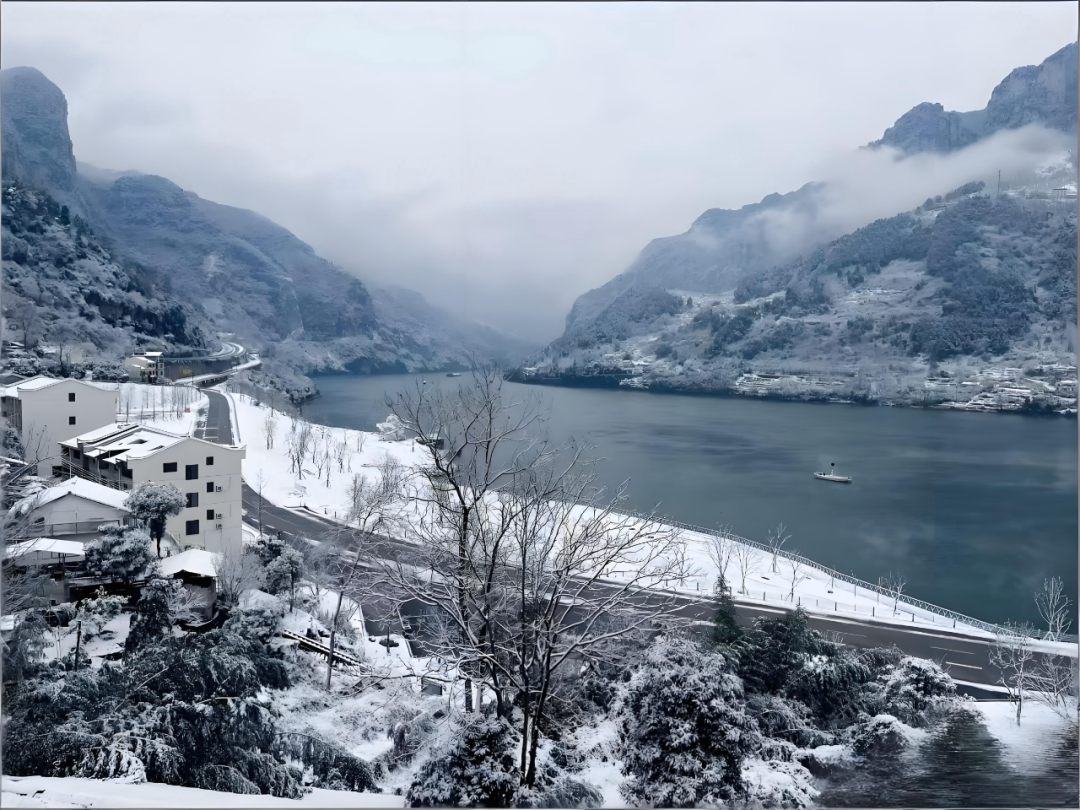 千丈岩的压迫感最终被甩在身后,后视镜里只剩下淡远的轮廓,周身的空气仿佛也随之松绑。车行至清江画廊时,摇下车窗听见风穿过枝头雪沫的轻响。冬日删繁就简的山水,在清江两岸缓缓铺开,车速慢下来,路似乎也柔软了,贴着水岸转出一弯又一弯。在这弯弯绕绕的一程中,轻轻绘出独属于你的宁静。