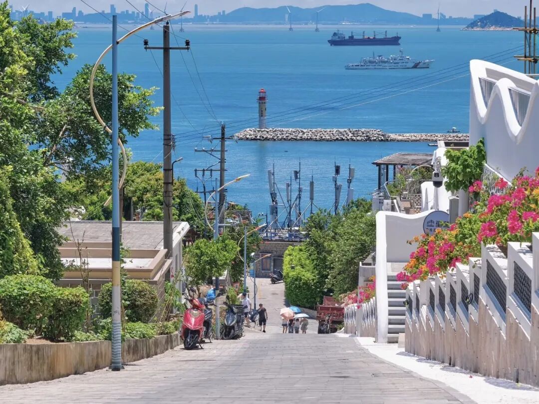漫步【野狸岛】,环岛步道临海而建,吹着海风,欣赏湛蓝海景与城市天际线,傍晚时分感受落日余晖;