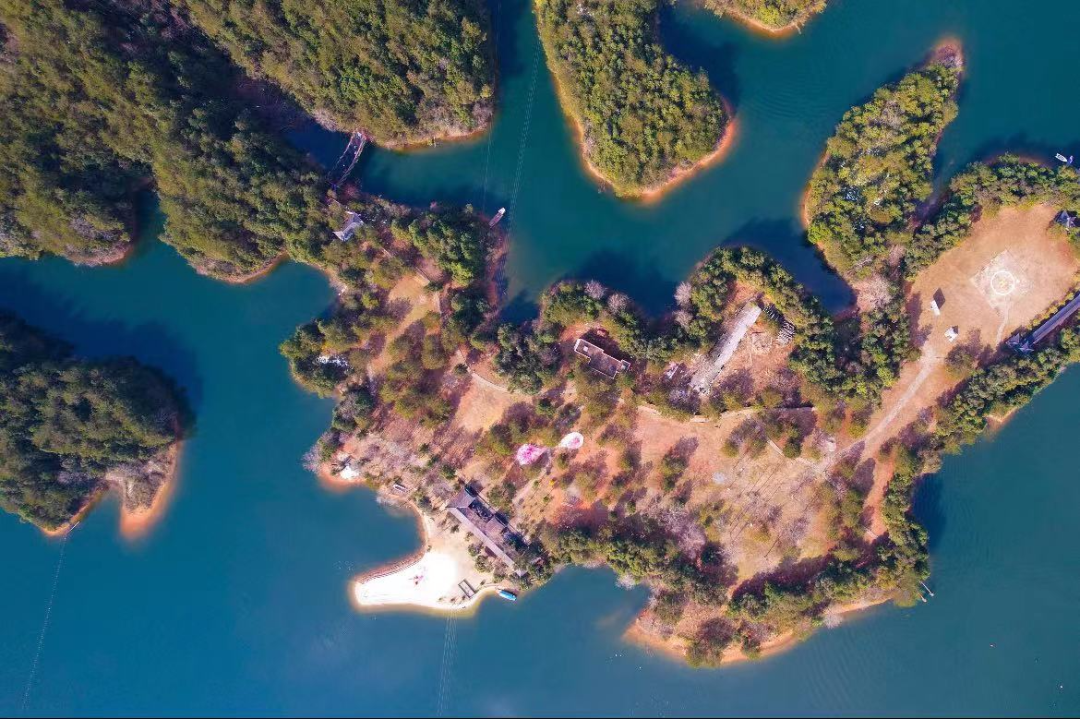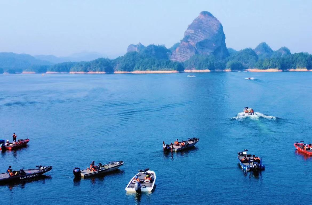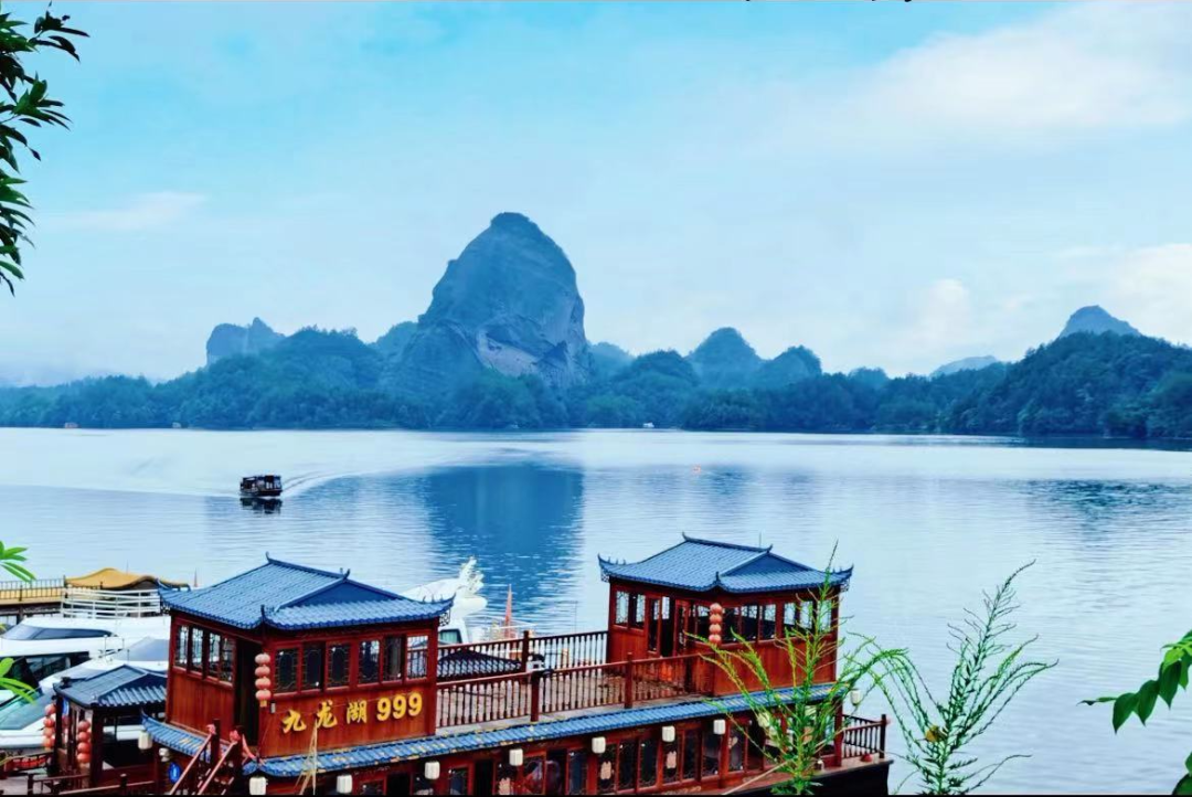 乘坐游船游览观光九龙湖的风光
