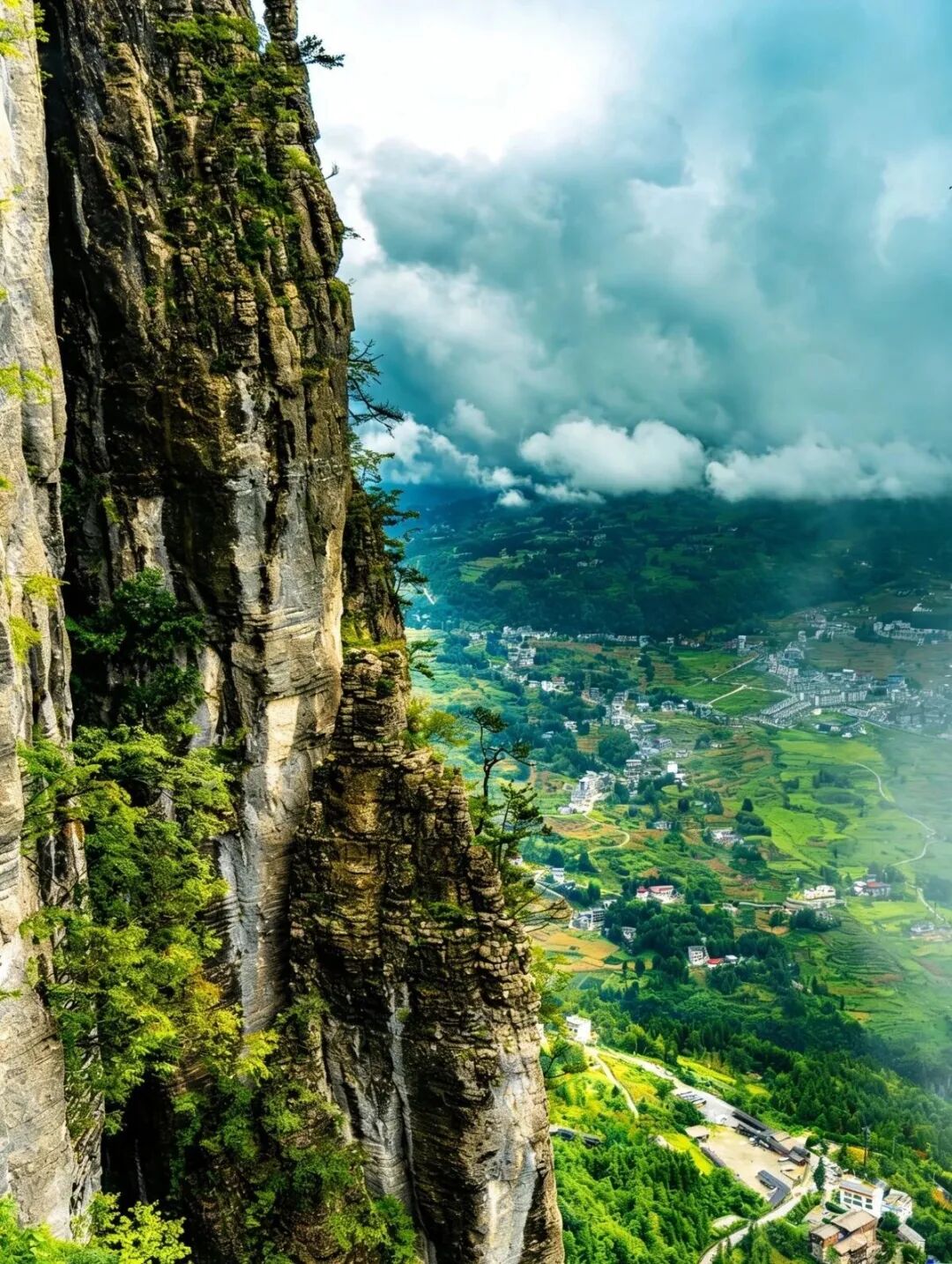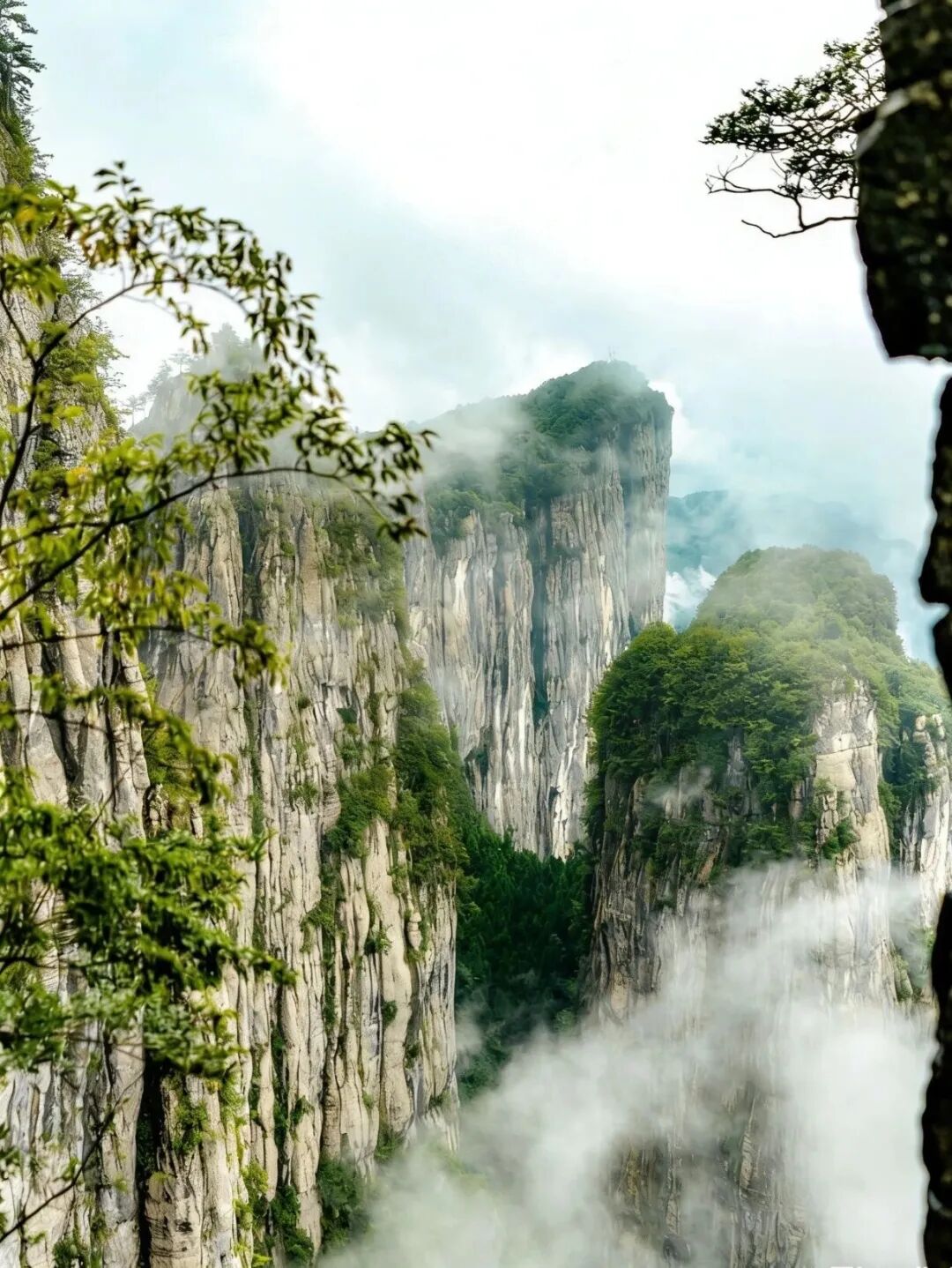 新生的绿意在岩峰间星星点点地闪烁