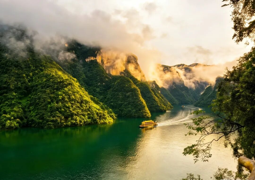 清晨碎金子般的阳光点缀着西陵峡、巫峡、瞿塘峡